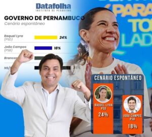 No cenário espontâneo, quando o eleitor responde sem receber nomes, Raquel aparece com 24% das intenções de voto, à frente do prefeito do Recife, João Campos (PSB), que soma 18%. Brancos e nulos chegam a 11%, enquanto 39% não souberam ou não quiseram responder.